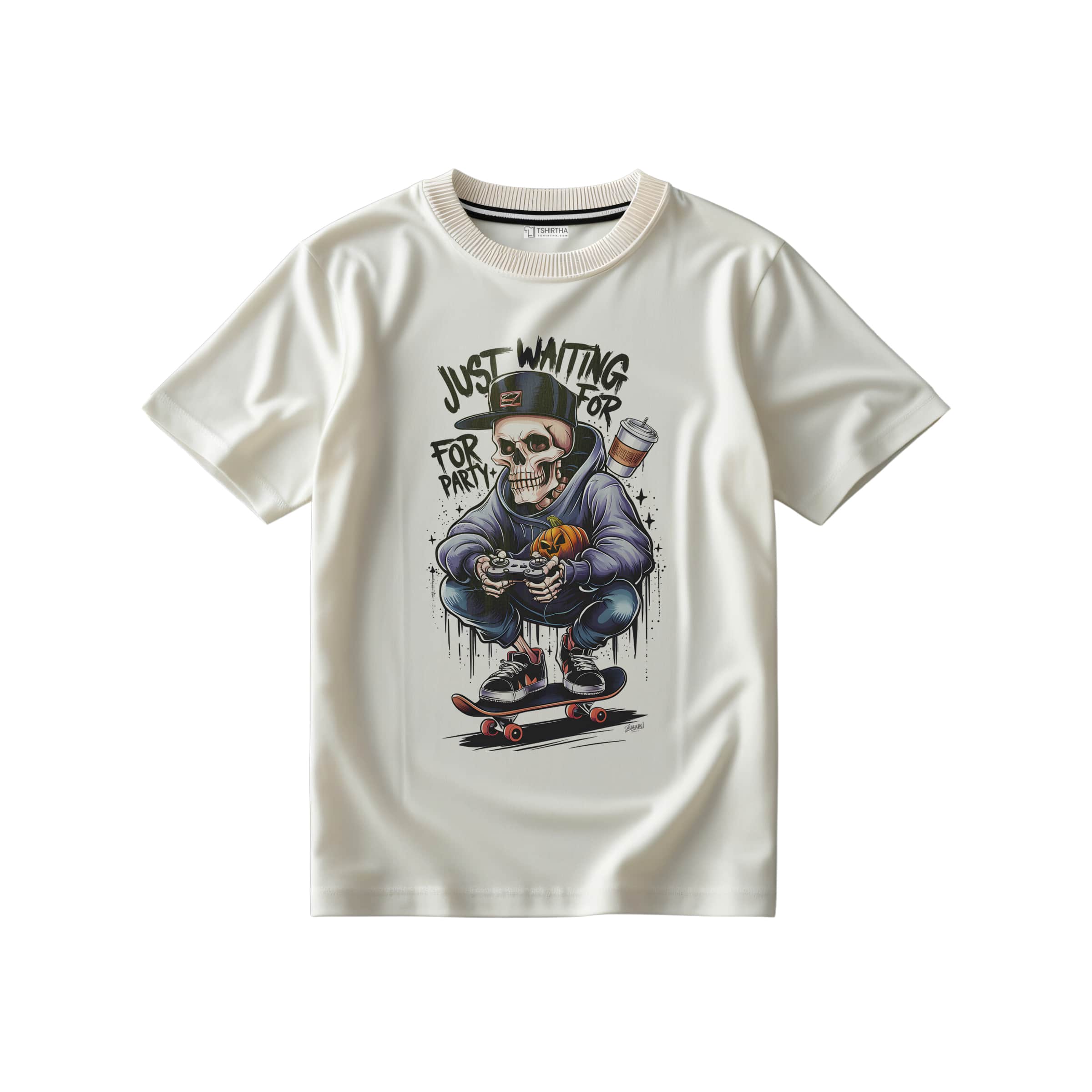 تیشرت سفید شیری با طرح اسکلت و پارتی